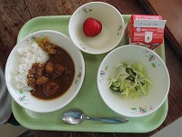 シーフードカレー・野菜サラダ・福神漬け・すもも・牛乳でした。