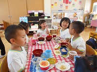4・5歳児の子どもたちは、ホールで一緒に いただきました
