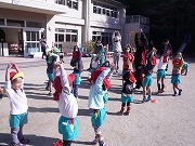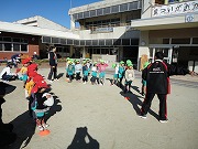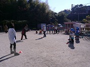 21日(金)幼稚園でラグビーの体験をしました。柔軟体操をしたり楕円形のボールをパスしたりしました。タックルの体験もしました。思いっきりぶつかる子や、優しくタッチしてくる子等様々です。講師はラグビースクールのコーチで、元園児のおじいちゃんです。年少、年中、年長のそれぞれがボール遊びの楽しさや、体を動かす心地よさを体験しました。見学に来ていらしたお母さんも、飛び入りのスタッフになりお手伝いをして頂きました。ありがとうございました。