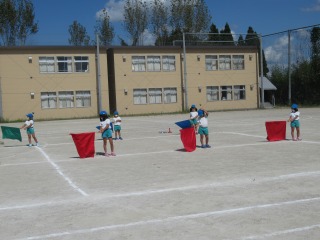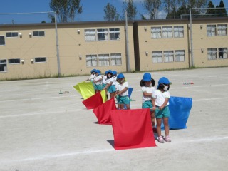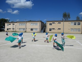 運動遊び カイト カラーフラッグ 号さて、次回予告でもありました、表現遊び2曲目はカイトです。