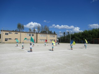 友達と気持ちを合わせて、旗の動きがビシッと揃うと、