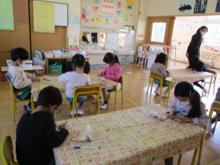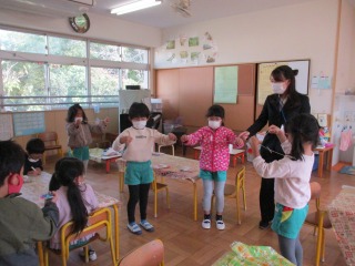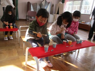 ひまわり組の子ども達に、ブンブンごまの作り方を教えて下さいました。