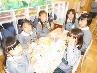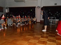 今日は待ちにまったクリスマス会。それぞれの学年が工夫を凝らした三角帽子をかぶって会場へ。ドキドキしながのキャンドルサービスでクリスマス会がはじまりました。