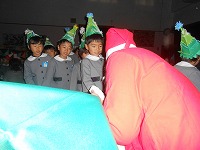 あれあれ?スズの音と共にサンタクロースさんが登場!一人一人にサンタさんからプレゼントをいただきました。うれしい笑顔が一杯になりました。