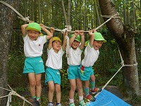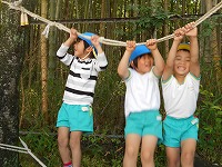 5歳児が楽しんだ後に、4歳児が楽しみ、そして3歳児も・・・と、自然と遊びが広がっていきました。「大きい組さんのようになりたい!」という思いもいっぱい感じ、ロープを誰も使ってない時間をしっかり見つけて、遊ぶ子どもたちの姿にたくましさも感じられました。