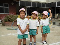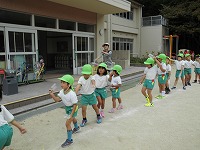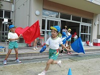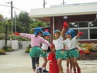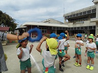 「運動会ごっこしようよ。」「おじいちゃんもおばあちゃんも見に来てくれるよ。」「かけっこしで1位になりたいねん。」など色々な思いを感じ、先生に話をしている子ども達です。