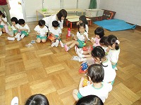 お菓子をお互いに意識し、自慢しながら食べている姿はかわいらしかったです。