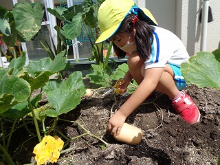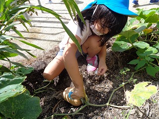 1学期に植えたピーナッツかぼちゃの苗