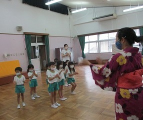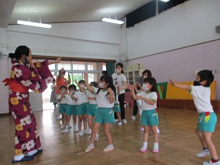 と、同じ振り付けでも、先生が踊る盆踊りの美しさに目を丸くしていました。