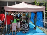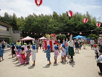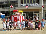 7月16日 幼稚園で夏祭りをしました。PTAの皆様が準備や進行をし、子どもたちに楽しいひとときをプレゼントしてくださいました。子どもたちの折り紙を飾った御神輿を担ぎ、「わっしょい わっしょい」とかけ声をかけながら、やぐらの周りを歩きました。この日は親子なかよし学級の親子さんたちも一緒に参加していただき、にぎやかな一日となりました。
