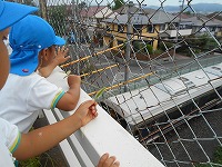 緑とは違うちょっと光った色の竹を見つけて喜んだり、跨線橋から電車を見たり