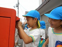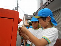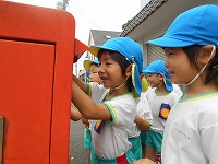 そして、大切な葉書をひまわり組の子どもたちが、ポストに投函に行きました。
