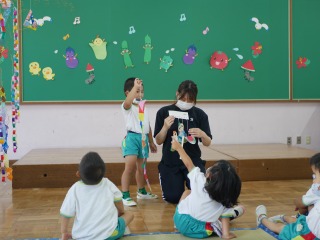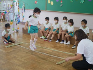 会では竹を使った遊びとして、年長さんがしている