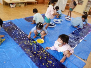 「足スタンプでなすびをつくったよ」