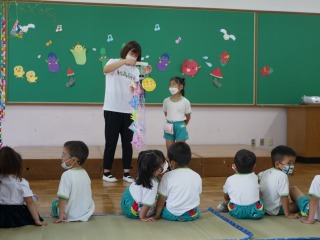 「いるかは どんぶらこ~♪」とリズムに合わせて