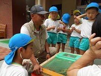 5歳児園児のおじいさんのご厚意で、かぶと虫を幼稚園に持って来ていただきました。