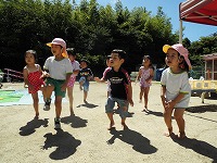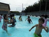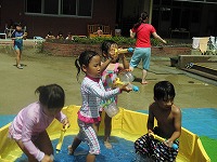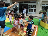 汗を拭きながら幼稚園に登園してきた子どもたちは、園庭に用意しているプールや水遊び遊具に飛びつき体いっぱいで夏を感じています。幼稚園の今の時期は毎日水遊びです。いっぱい遊んで、いっぱい食べて、いっぱい寝て元気いっぱい過ごしましょう。
