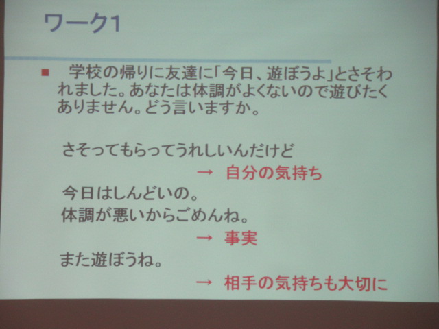 2月14日(木)、6年生は「アサーティブコミュニケーション」について学習しました。講師は、先週に引き続き田辺中学校スクールカウンセラーの金子先生です。