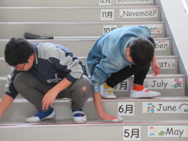 普段の掃除だけでは取り切れない「こびりついたシミや汚れ」も,6年生の団結力で見違えるほどきれいになりました。