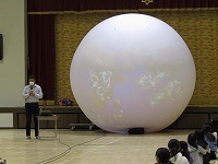 映し出され、きれいな地球に歓声が上がりました。お話を聞いた後、自分の手で