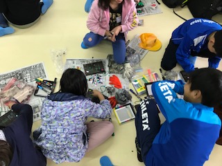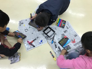 磨きをかけた「焼き板」に油性ペンで文字や絵を描いて,素敵な作品に仕上げています。