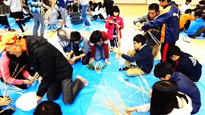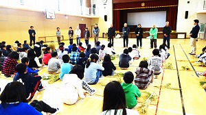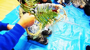 民生委員さんはじめ地域の方々が、子どもたちにしめ縄づくりを教えてくださいました。