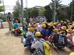 わくわくした顔つきで元気に出発をした5年生。