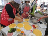 今年度はクレープを作りながら、参加者の皆さんは小学校の給食のことや入学時に必要な持ち物の話などについて交流されていました。また、少しではありますが、小学校の普段の授業の様子についても参観していただき、小学校入学に向けた有意義な時間を過ごしていただくことができました。