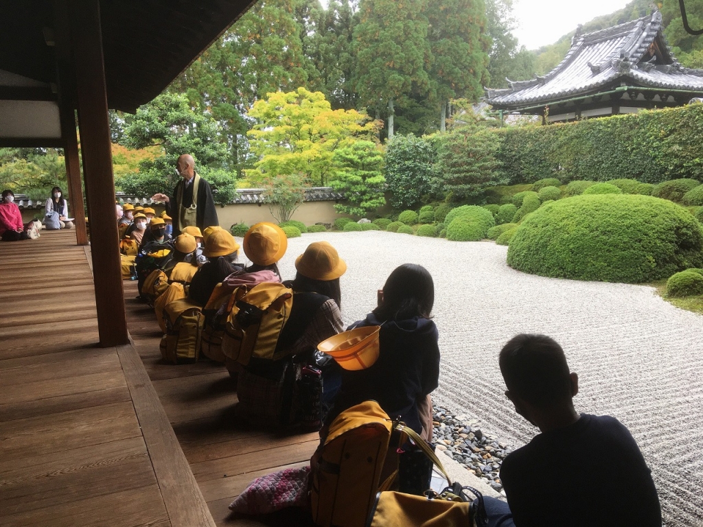 本日は、6年生の校外学習でした。朝からお天気が心配された中でしたが、子ども達は元気に出発しました。田辺中学校では、校舎内を巡らせてもらい、中学生が授業をしている様子を見学しました。一休寺では、枯山水を見せていただき、心穏やかなひと時を過ごしました。お昼は、田辺公園でソーシャルディスタンスを意識しながら、みんなで楽しく食べました。