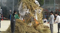 お正月行事の一つである「とんど」を実施しました。校庭が狭くなり、今年の