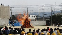 を見ますと話され、みんなも願い事をしながら、大空に舞い上がる炎と灰を見て