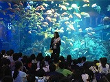 鳥羽水族館で、集合写真の後、大水槽前でグループ活動の