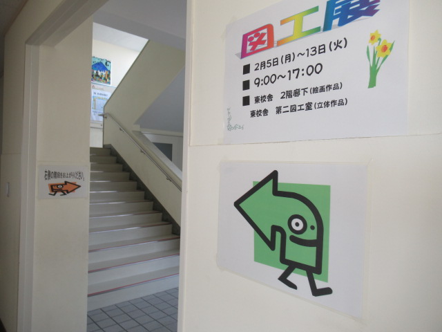 2月5日(月)から13日(火),9:00~17:00の時間帯で校内図工展を開催しています。場所は東校舎2階の第2図工室とその周辺の廊下です。