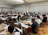 夕食の様子です。コロナ対策として、食事するグループと入浴するグループに分かれての活動となりました。