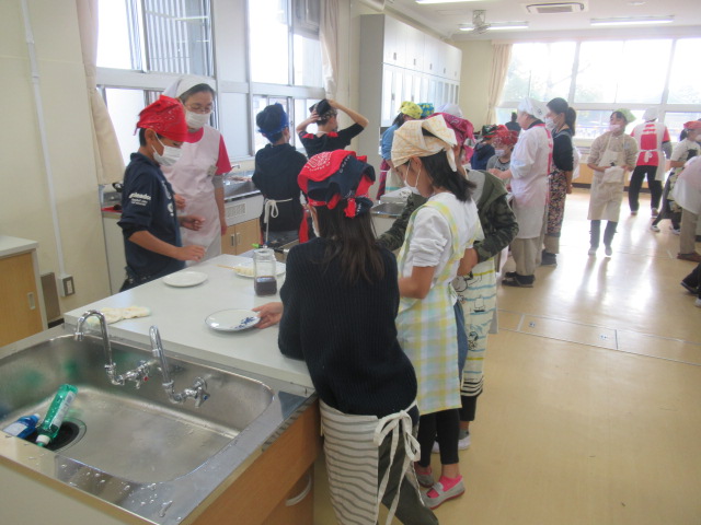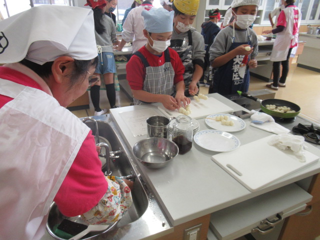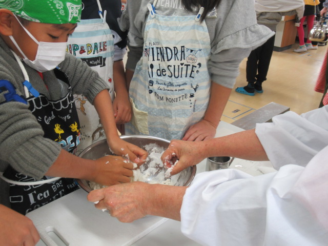 12月4日(火)から11日(火)までの間に、5年生は市食生活改善推進員の方々のお世話になり米粉を使った「団子作り」を各クラス行いました。材料の米粉は、1学期から取り組んでいる米作りで収穫したお米を使っています。