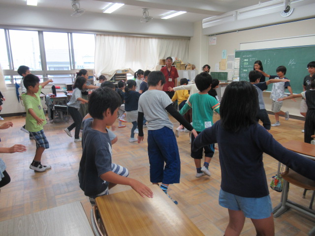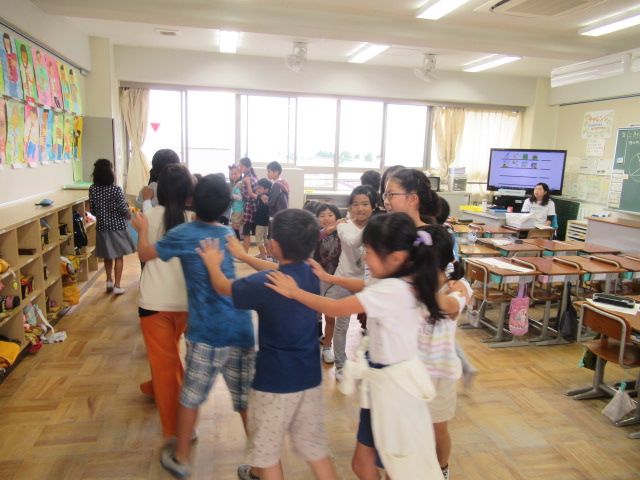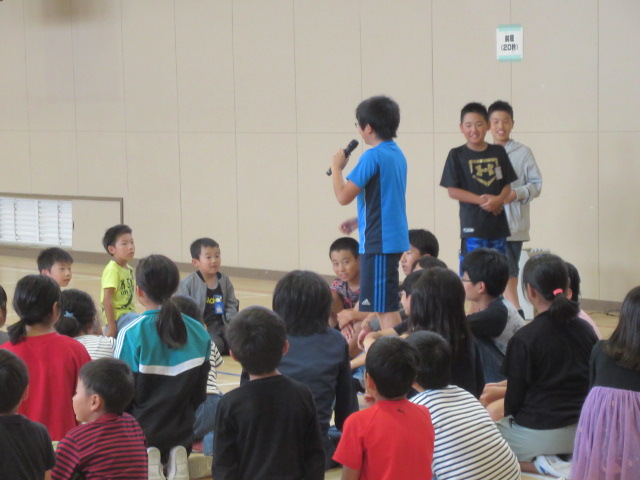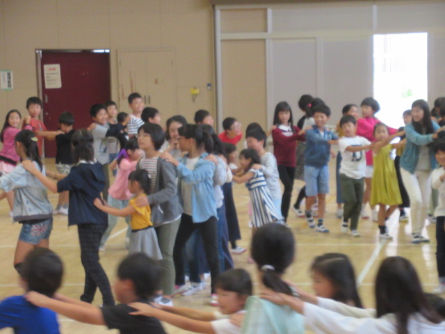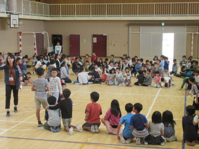 10月4日(木)、昼休みに「ミヤマキッズ遊び」を行いました。白組は体育館を使って、全員で「じゃんけん列車」をしました。
