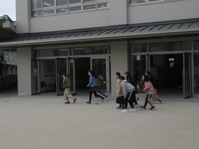 2月27日(水)、休み時間中に地震や火事が起こった時、どう対応するかの避難訓練を実施しました。