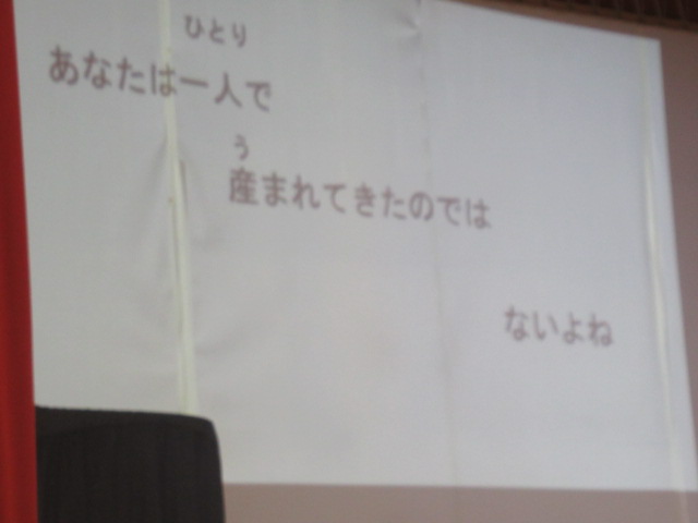 今月4日から10日は「人権週間」です。校長先生からは一人一人の個性をお互いが認め合うことの大切さについて、また支援加配からは「自分の命」を遡ると数十億人の先祖から受け継いだ稀有で貴重なものであるという人権に関わるお話がありました。また生徒指導担当からは、今月の月目標「相手の気持ちを考えて行動しよう」について話がありました。
