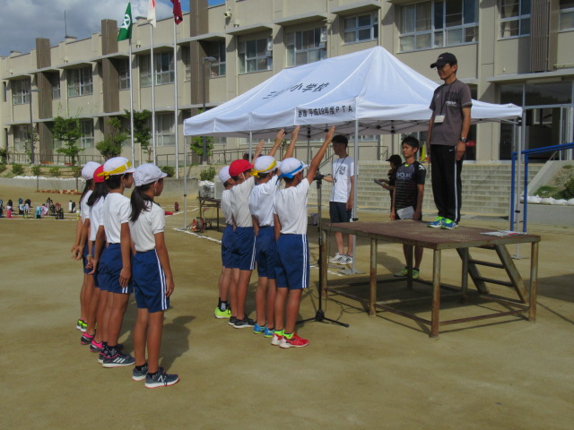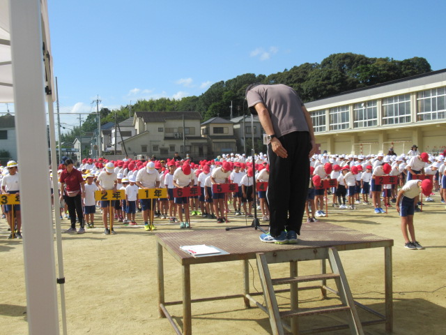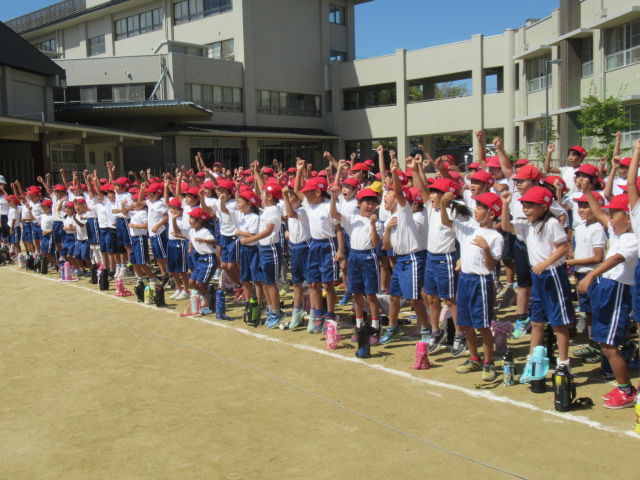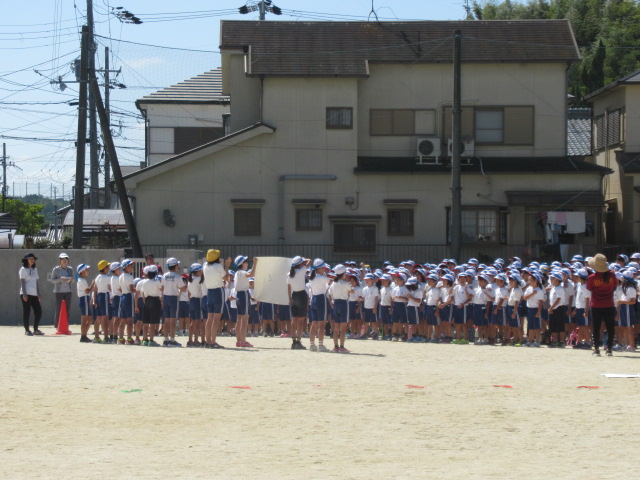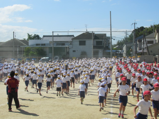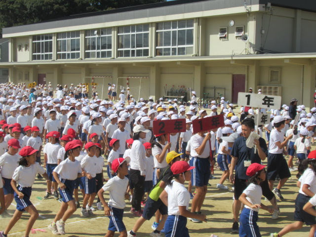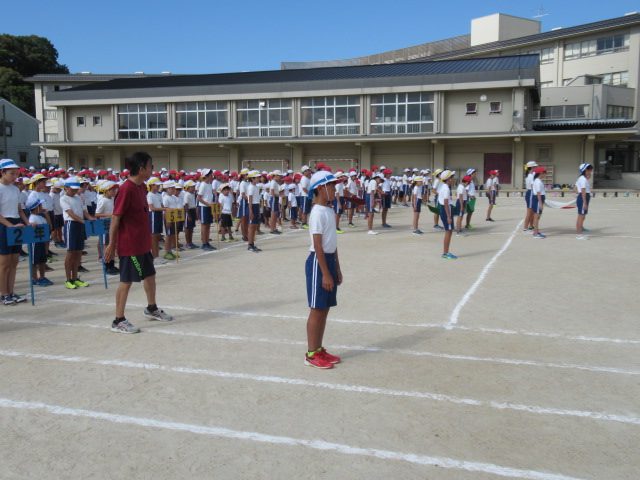 9月19日(木)、1回目の全校練習を行いました。色毎に児童席で集合した後、開会式の入場から退場までの流れを確かめました。