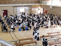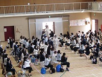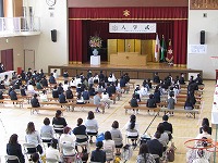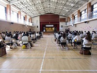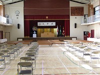 その後、担任の先生の後を並んで、会場の体育館に入りました。会場のイスに