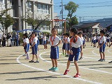 学年ごとに表現運動と徒競走・リレーを行いました。自分の演技、競技が終わると