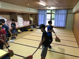 朝の集い,そうじを行い,朝食をいただきました。