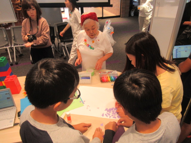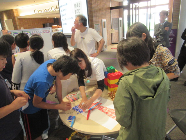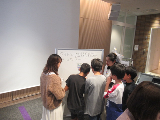 お互いの作品を見合う中でも、子ども達はニコニコ笑顔でした。活動を通して、みんなでアイデアを出し合い、一つの作品を作ることの楽しさを子ども達は、強く感じていたようでした。