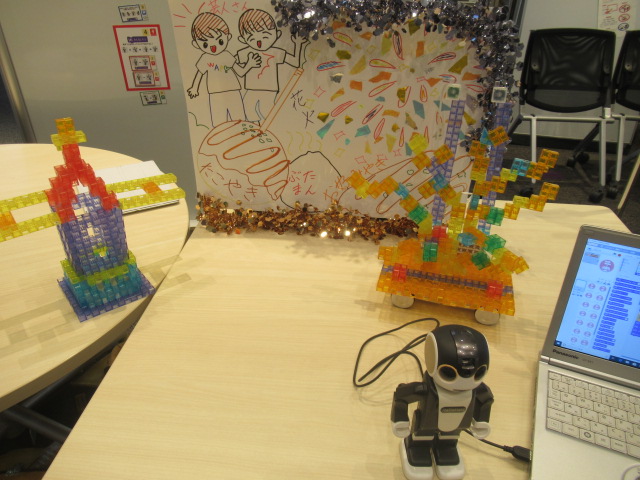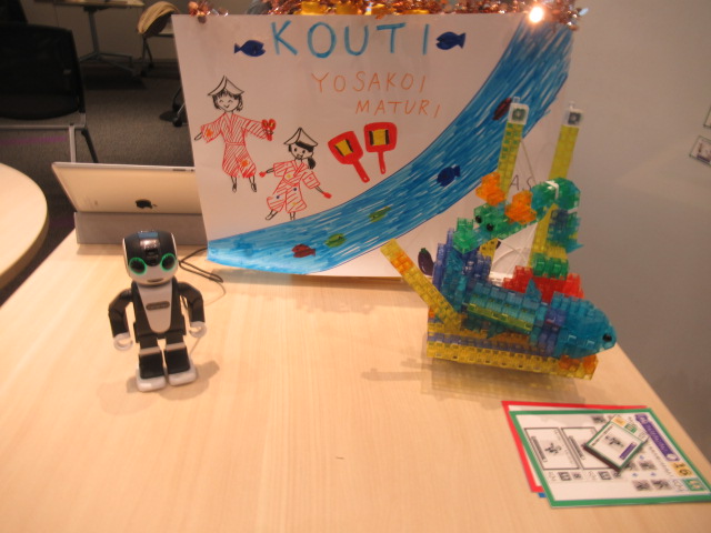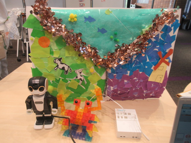 子ども達は、背景を作ったり、ダンスを考えたりするなど、それぞれの役割の中で一生懸命、そして、楽しく活動していました。最後は、グループで作った背景の前で、プログラミングしたロボットを動かし、みんなに披露しました。