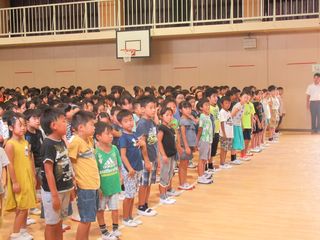 校長先生から、終業式の時に話をした「①夏休みだからこそできる体験②地域の人や家族との挨拶③当たり前のことを当たり前に」が実践できたかどうかを振り返り、いつも感謝の気持ちをわすれずに楽しみながら2学期の79日間を送ってほしいというお話がありました。