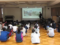 ‟世界のトイレと未来”というテーマで総合地球環境学研究所の方から話を聞きました。「日本のトイレはきれいが当たりまえ」と思っている子ども達、世界にはトイレが無い国もあると知って驚いていました。トイレは衛生面だけではなく、SDGsにもつながっていることを学習しました。初めて知ることばかりで興味を持ってきていました。