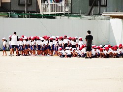 2年生が、徒競走の練習をしました。徒競走でも、覚えることは沢山あります。1 並ぶ場所。2 並ぶ順番。3 走りきること(ゴール前で失速しないようにすることは、子どもには難しいことです)。4 走り終わったら、順位カードの順番に並んで座ること。最後までしっかりと走りきれたら、どうか褒めてあげてください。