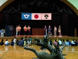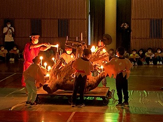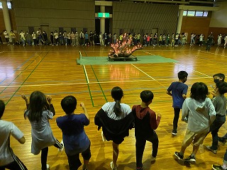5年生が心を一つに呪文を唱えると火の神が登場!
