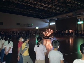 キャンドルを中心に、自分たちで考えたゲームやダンスで盛り上がり、みんなの心に友情の火が灯る楽しい夜を過ごしています。