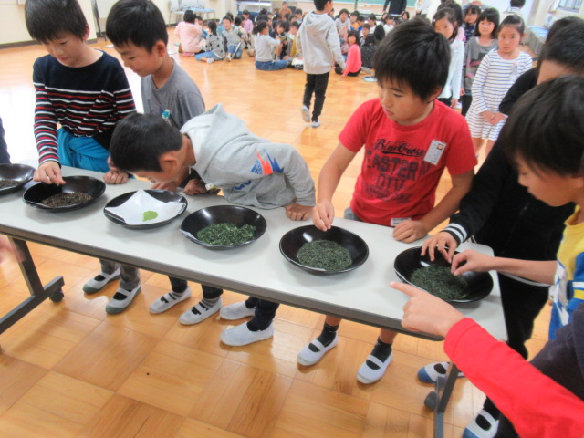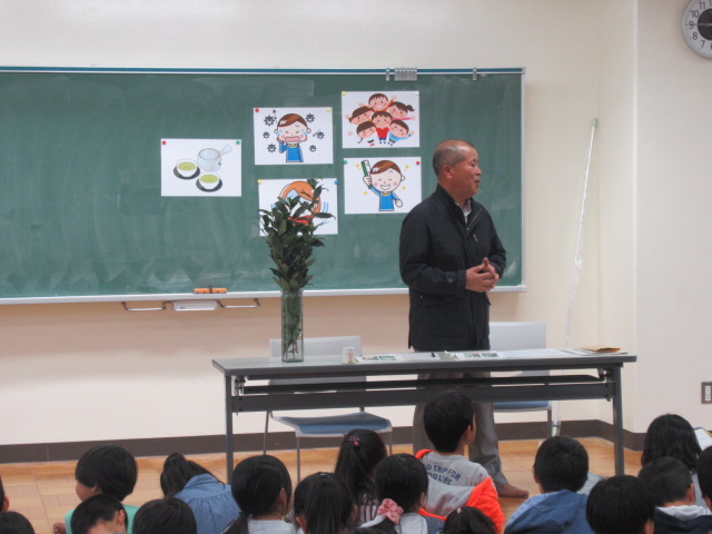 11月14日(水)、3年生は校区にお住まいの茶農家 川井 稔 様を講師にお招きして、社会科で学習している地域の伝統産業「お茶」の話を聞かせていただきました。